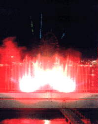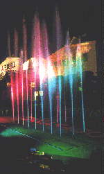 A beautiful 40-nozzle wave fountain, animated to lights and sound controlled by a MIDI-based computer system, accompanied by lasers, and even some fireworks.
